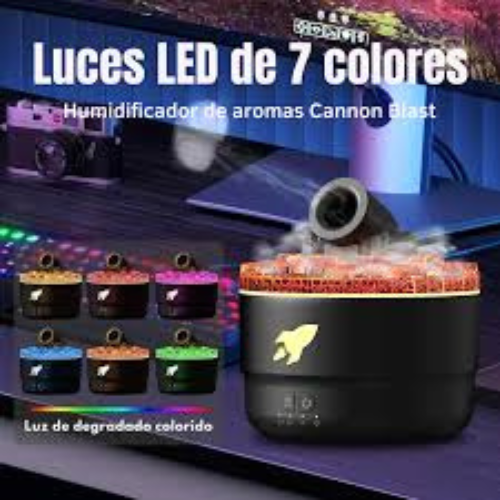 Un humidificador distinto a todo: diseño en forma de cañón, efectos de vapor realistas y luces LED que transforman cualquier espacio.