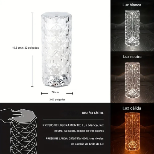 Su estructura estilizada y su iluminación suave la convierten en una opción ideal para escritorios, mesas de noche o rincones decorativos.
