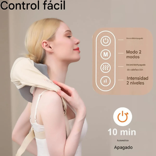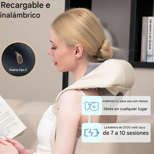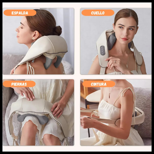 Masajeador con un innovador sistema que simula un masaje profesional, ayudando a descontracturar y relajar los músculos rígidos, mejorar la circulación sanguínea y potencia el alivio del estrés muscular, proporcionando una sensación de confort inmediata.